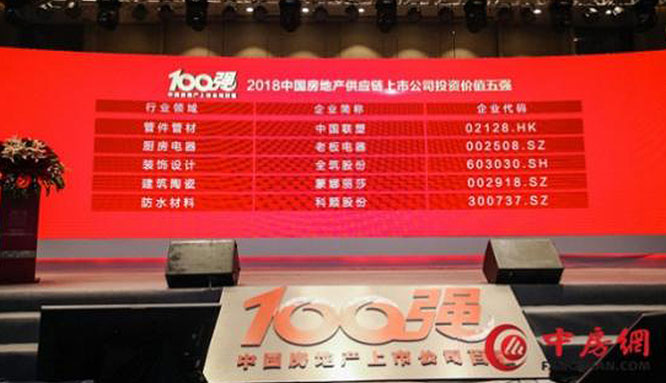 老板厨房电器荣膺中国房地产开发企业500强建材采购首选品牌
