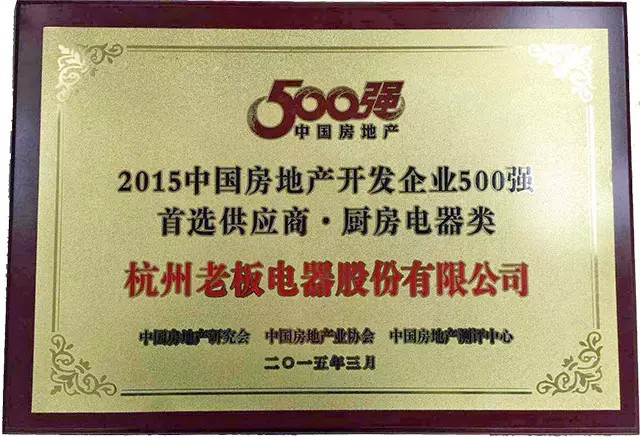 近日,被誉为中国房地产产业链“奥斯卡”盛典的“2015中国房地产开发企业500强首选供应商品牌测评大会”在北京隆重举行,数百位来自房地产产业链品牌企业的代表齐聚一堂,共同见证房地产企业500强测评及首选供应商品牌的诞生。老板电器以22%的品牌首选率,获得“2015中国房地产开发企业500强首选供应商品牌”厨房电器类首选品牌。