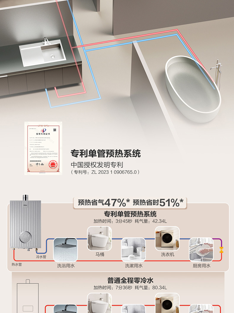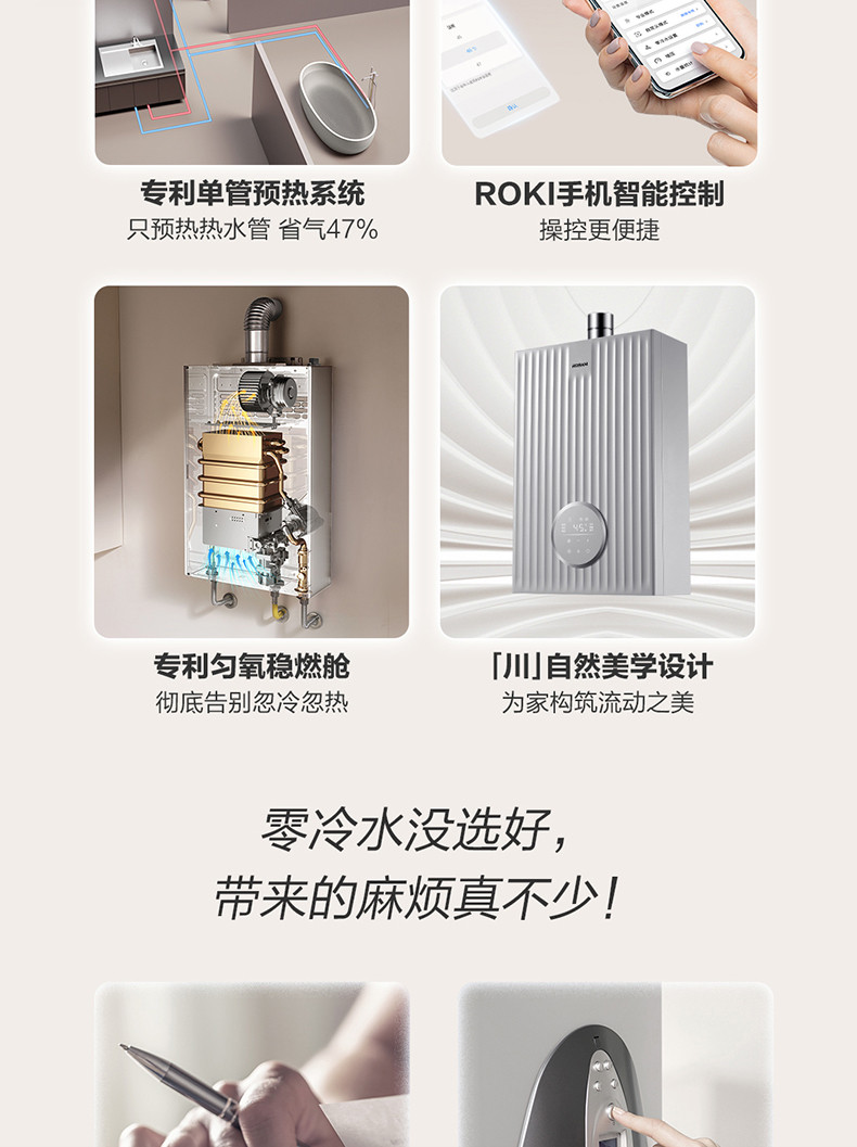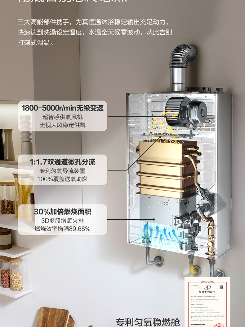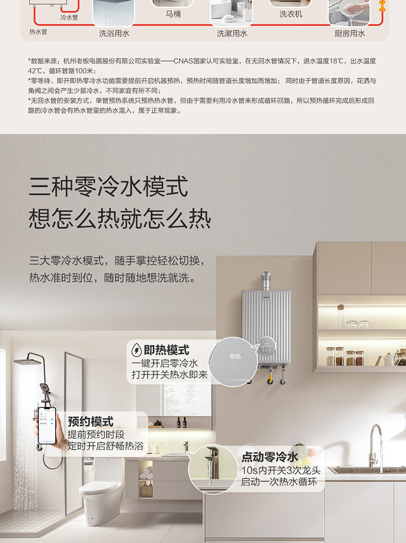 专利单管预热系统、三种零冷水模式、专利匀氧稳燃技术、手机智能WIFI控制