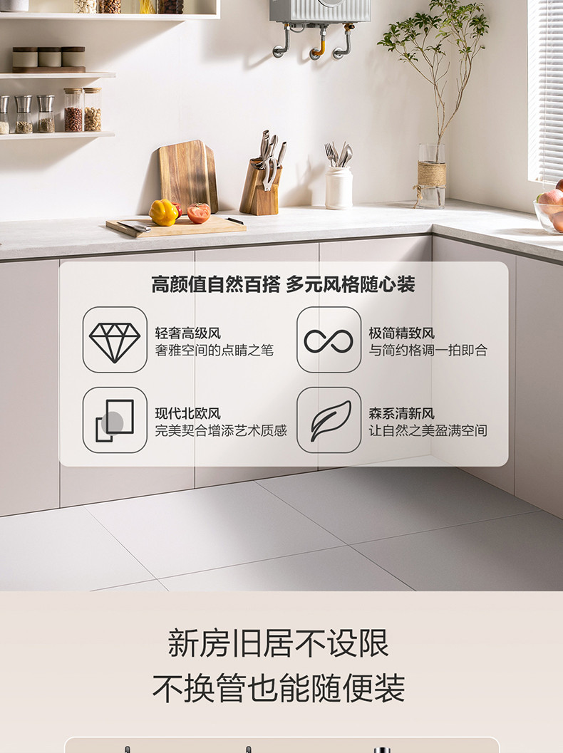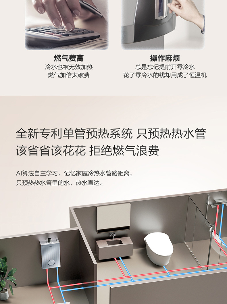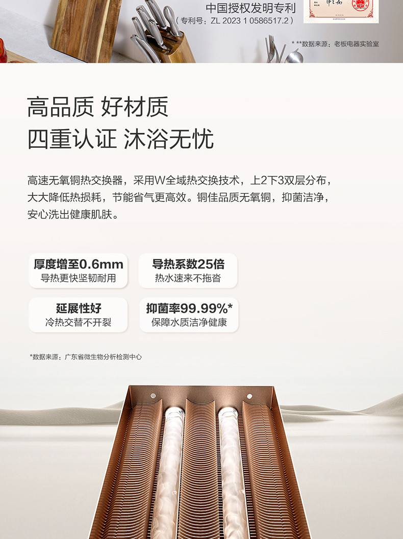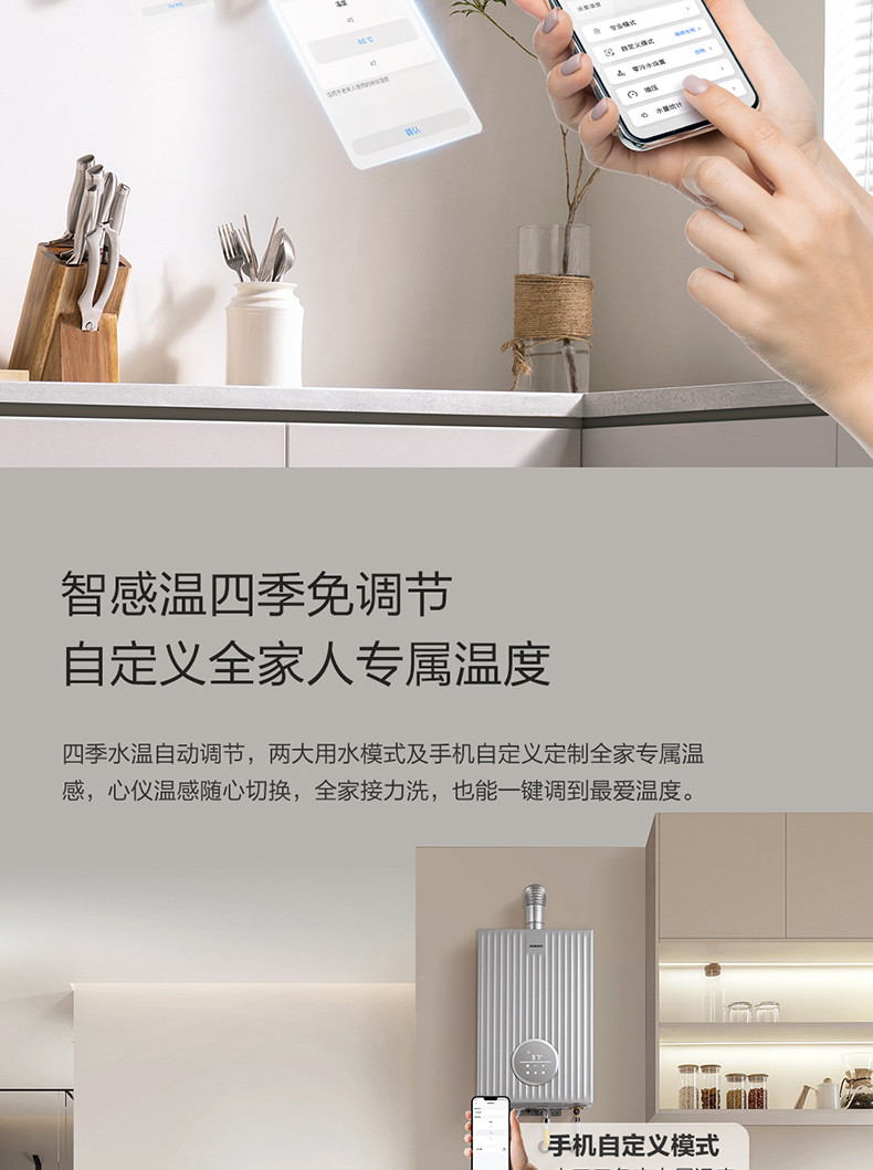 专利单管预热系统、三种零冷水模式、专利匀氧稳燃技术、手机智能WIFI控制