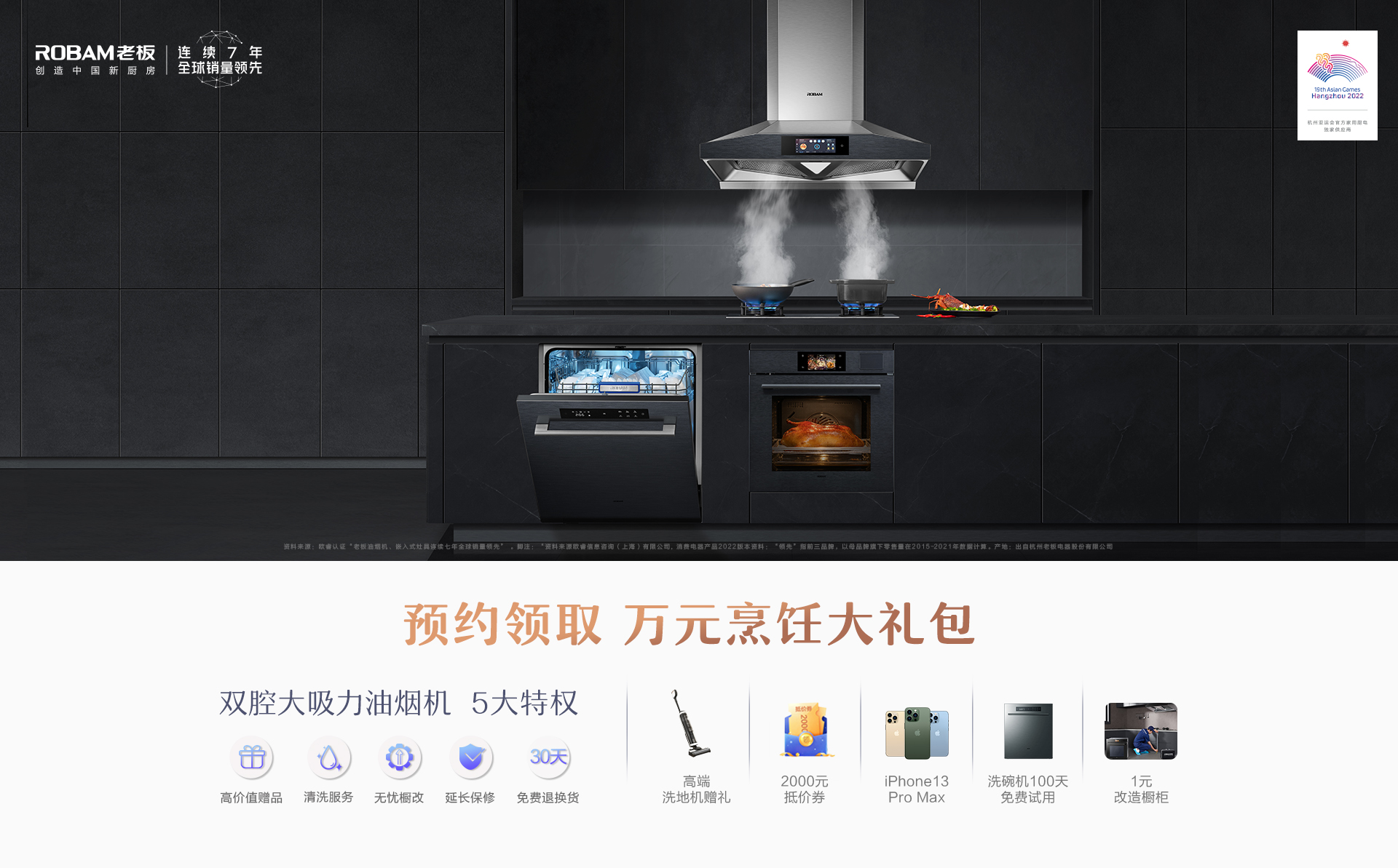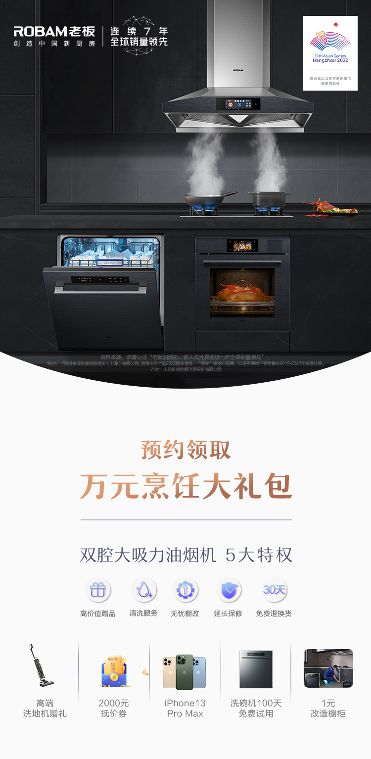 双腔大吸力油烟机套系专属高价值添可洗地机/戴森吸尘器等赠品;